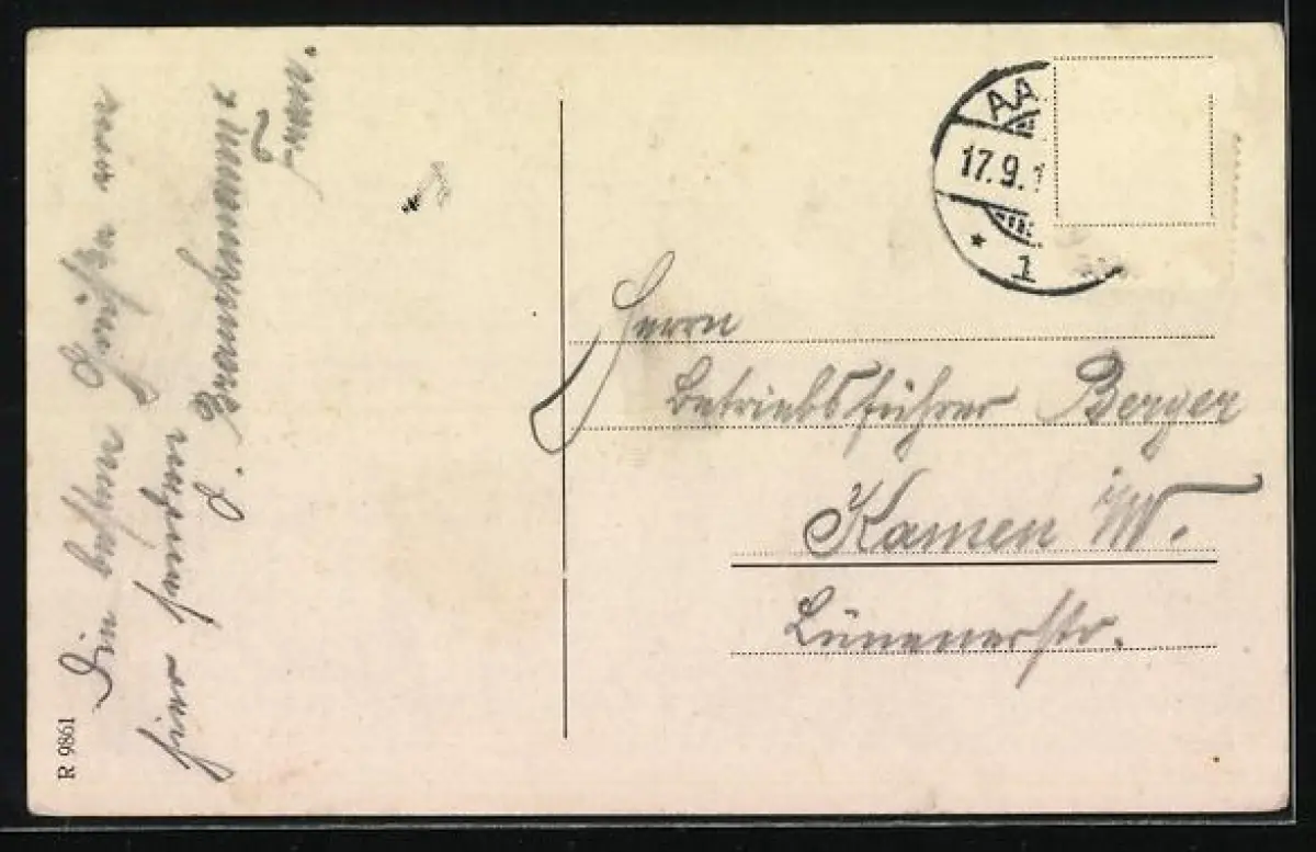 alte Ansichtskarte, gelaufen, Briefmarke entfernt, rückseitig Oberflächenschaden, guter Zustand