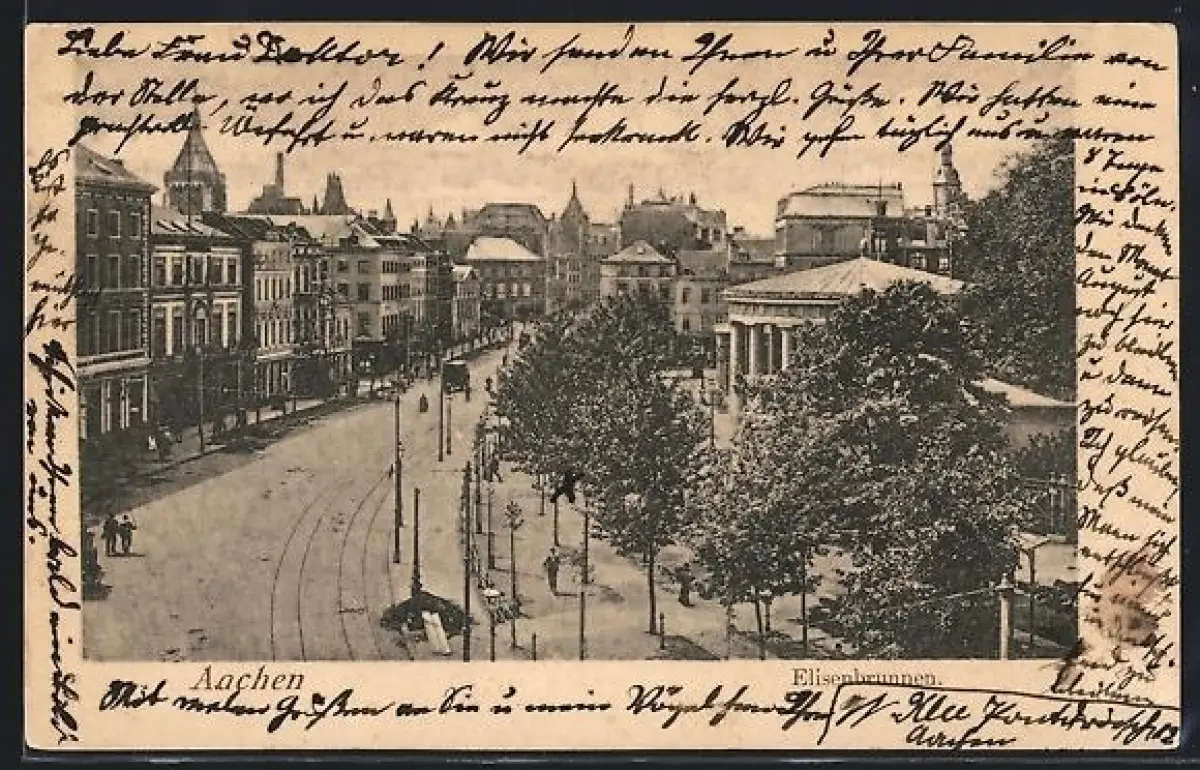 AK Aachen, Strassenpartie mit Elisenbrunnen