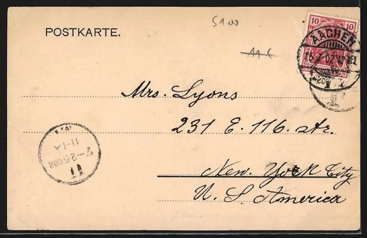 alte Ansichtskarte, gelaufen 1902, Eckknick re. u., guter Zustand
