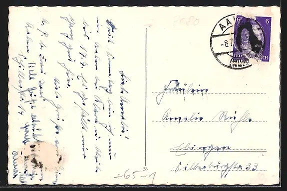 alte Ansichtskarte, gelaufen, rückseitig Klebe- und Papierreste, rückseitig Oberflächenschaden, guter Zustand