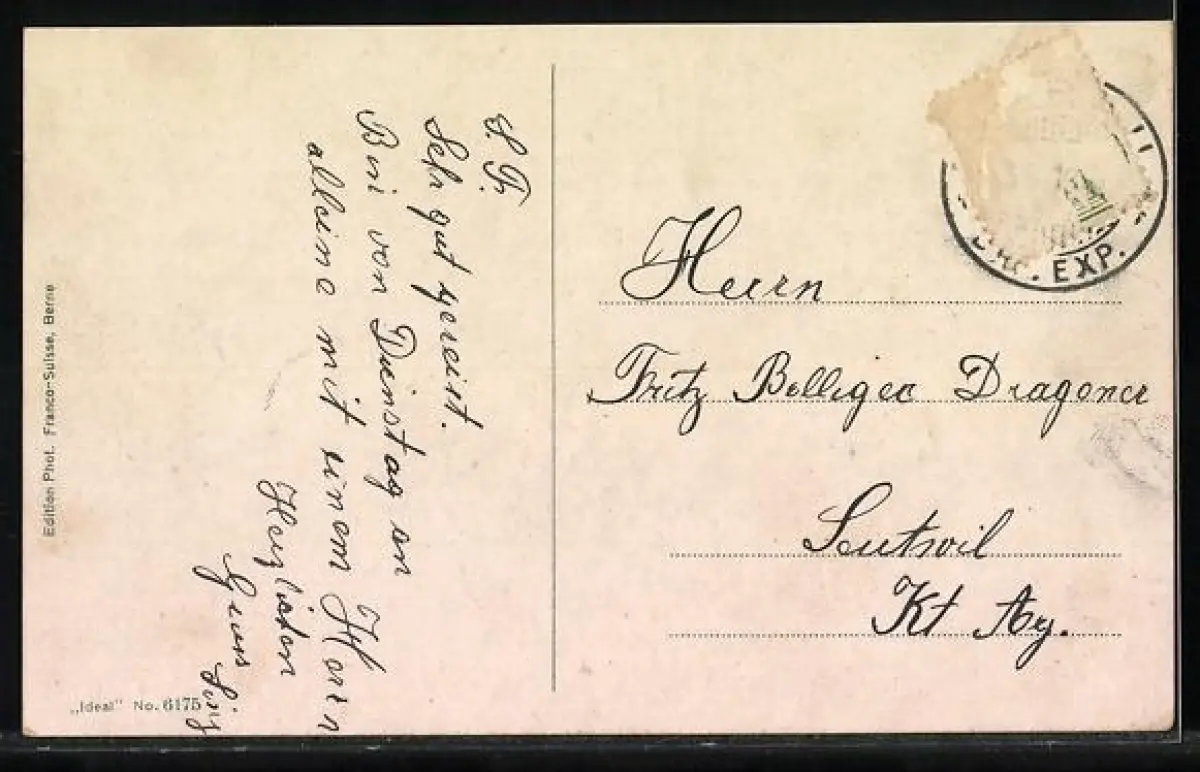 alte Ansichtskarte, gelaufen, Briefmarke entfernt, guter Zustand