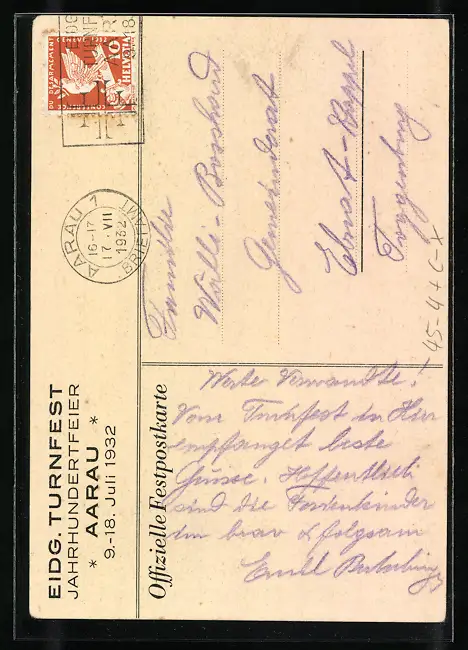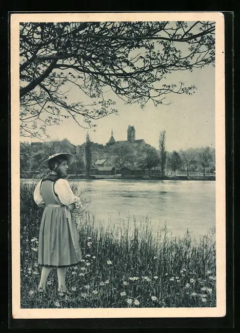 AK Aarau, Eidg. Turnfest 1932, Frau in Tracht, Ortsansicht