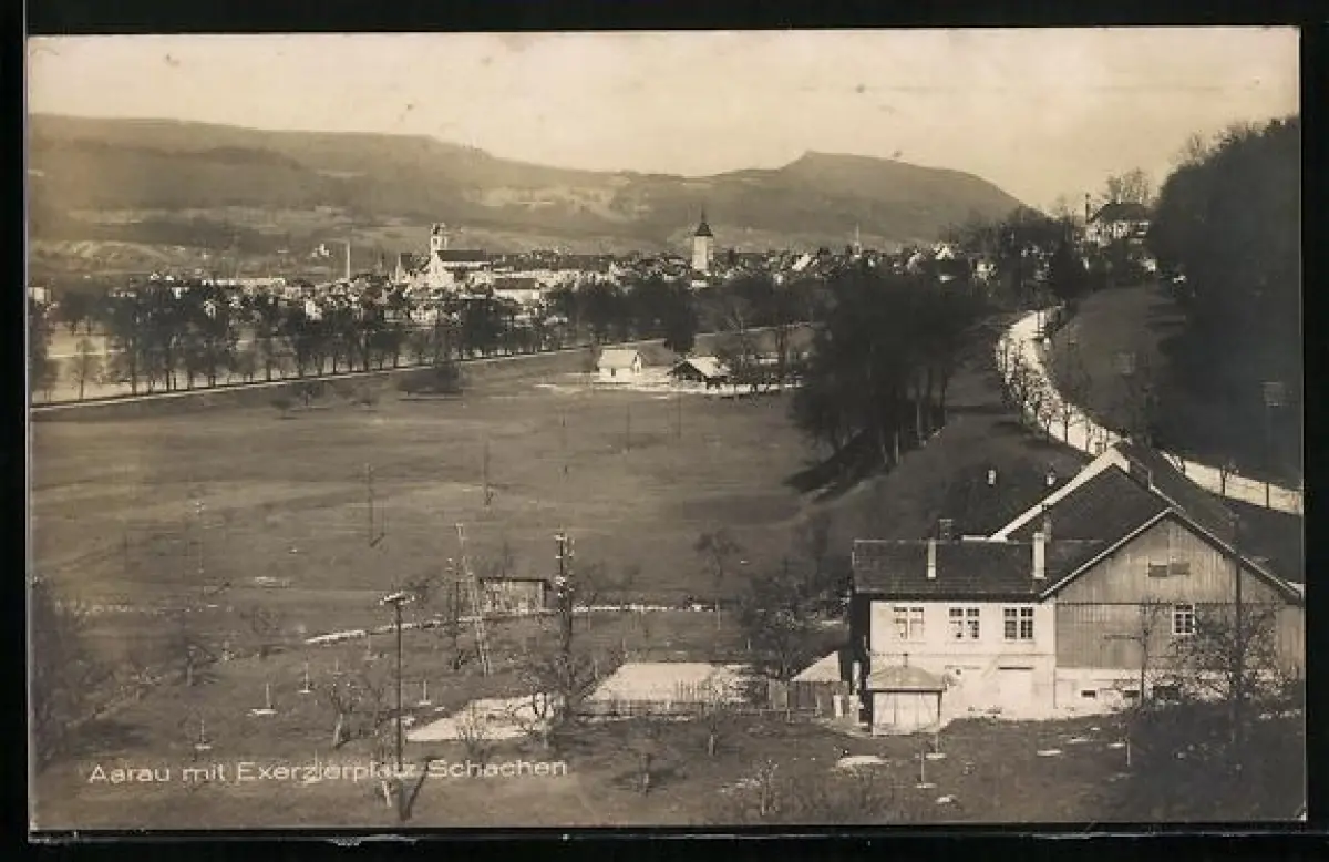 AK Aarau, Ortsansicht mit Excerzierplatz Schachen