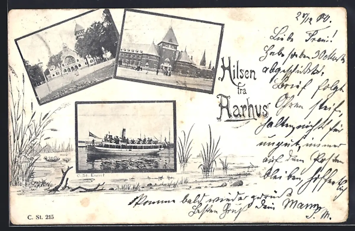 AK Aarhus, Dampfer und Ortspartien im Ufer-Passepartout