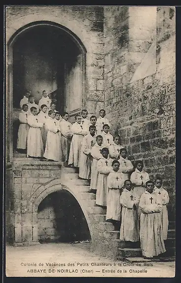 AK Abbaye de Noirlac, Colonie de Vacances des Petits Chanteurs à l`entrée de la Chapelle