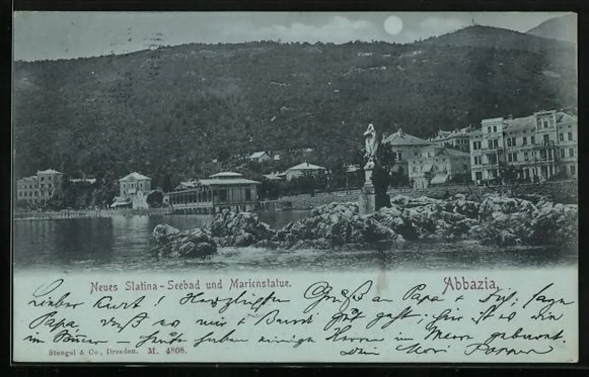 AK Abbazia, Neues Slatina-Seebad und Marienstatue