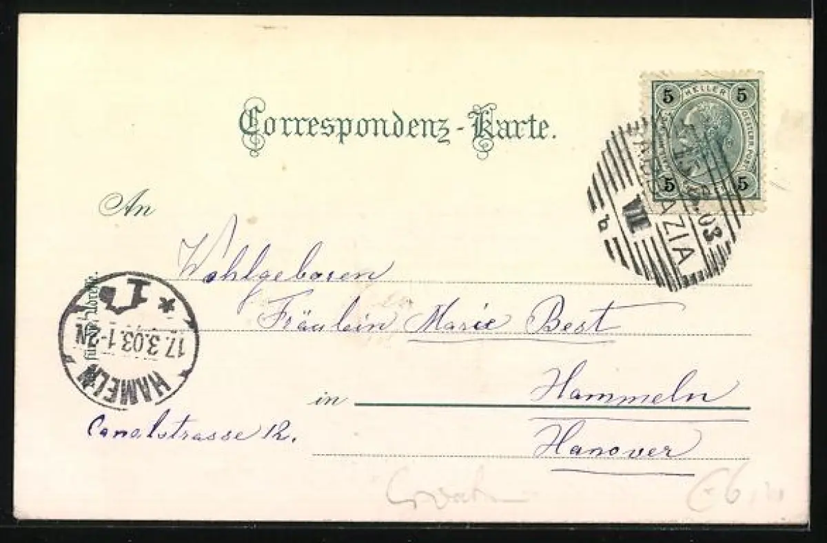 alte Ansichtskarte, gelaufen 1903, guter Zustand