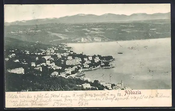 AK Abbazia, Ortsansicht mit Umgebung aus der Vogelschau