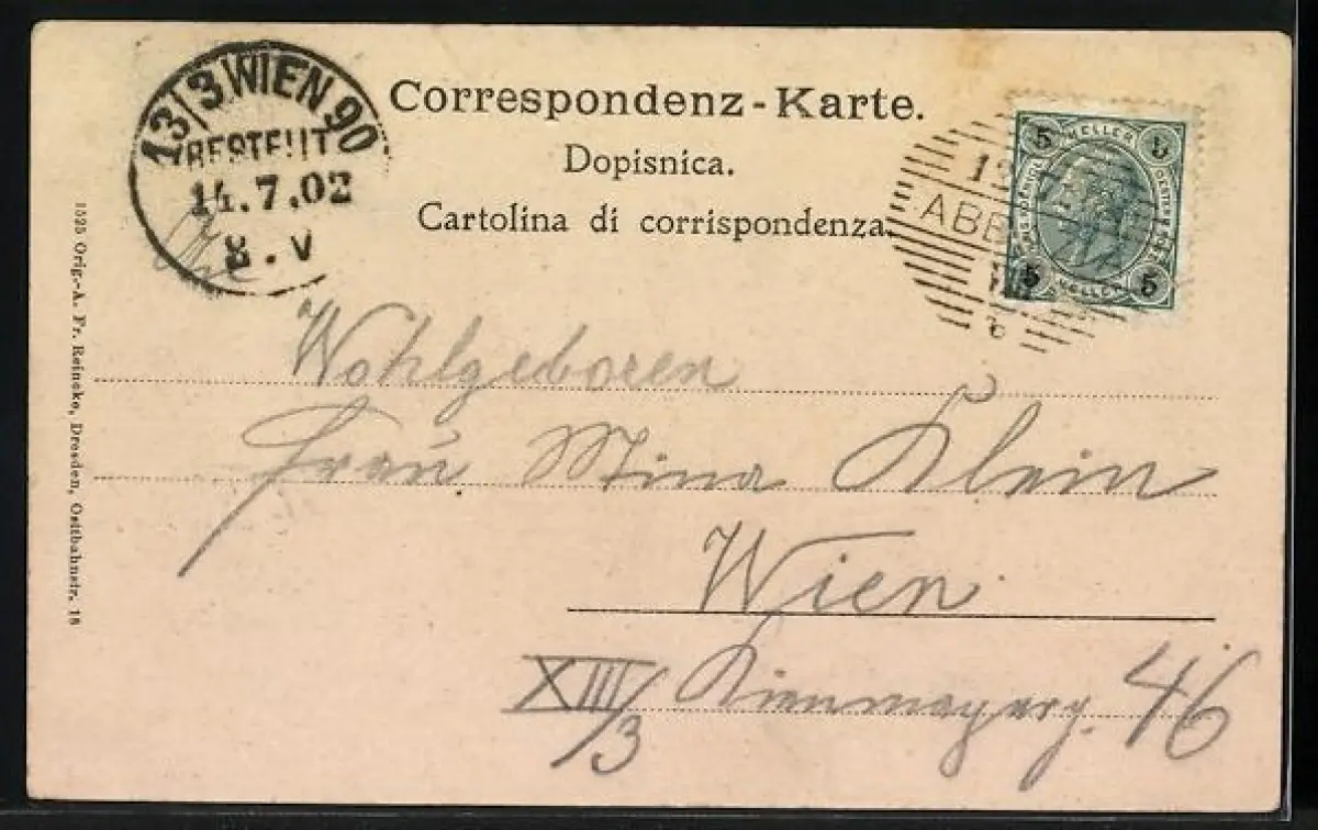 alte Ansichtskarte, gelaufen 1902, Eckknick re. oben, guter Zustand