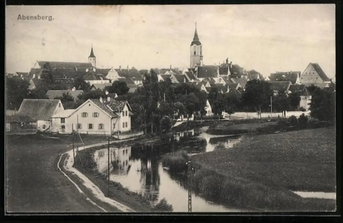 AK Abensberg / Hallertau, Ortsansicht mit Kirche und Fluss