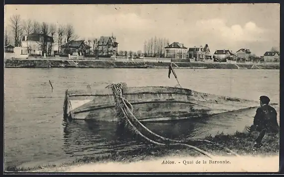 AK Ablon, Quai de la Baronnie avec bateau échoué