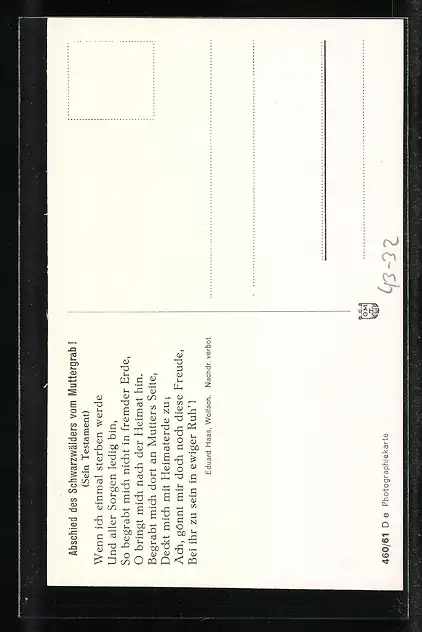 AK Abschied des Schwarzwäldlers vom Muttergrab