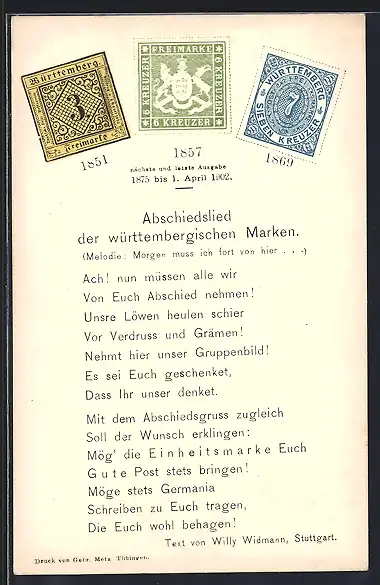 AK Abschiedslied der württembergischen Marken, 1875 bis 1902
