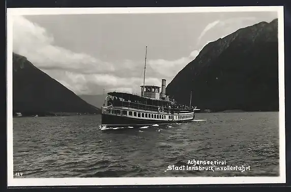 AK Achensee /Tirol, Dampfer Stadt Innsbruck in voller Fahrt