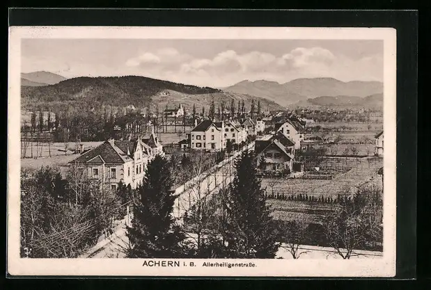 AK Achern i. B., Die Allerheiligenstrasse aus der Vogelschau