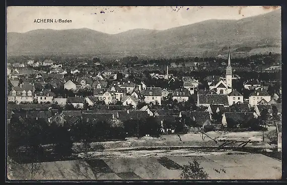 AK Achern i. Baden, Blick vom Berg auf den Ort
