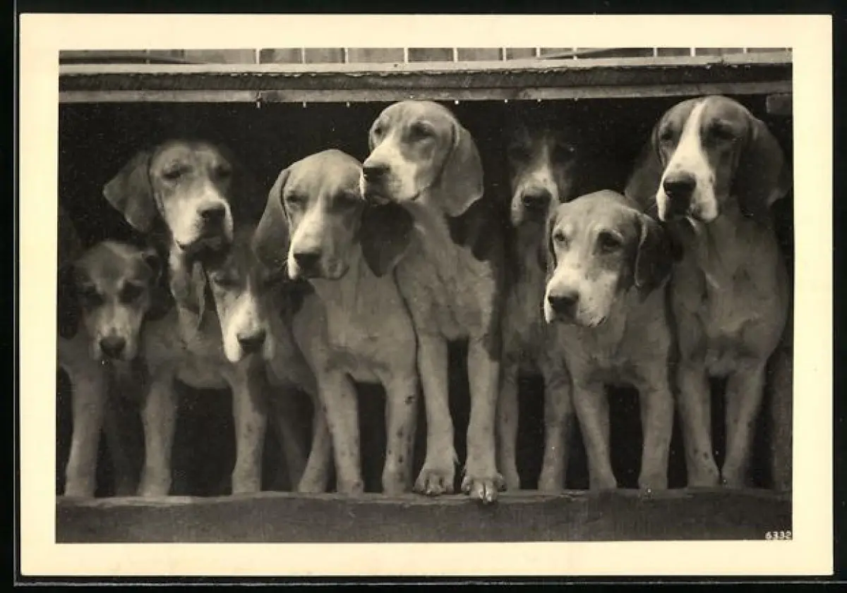 AK Acht Jagdhunde unter einem niedrigen Dach