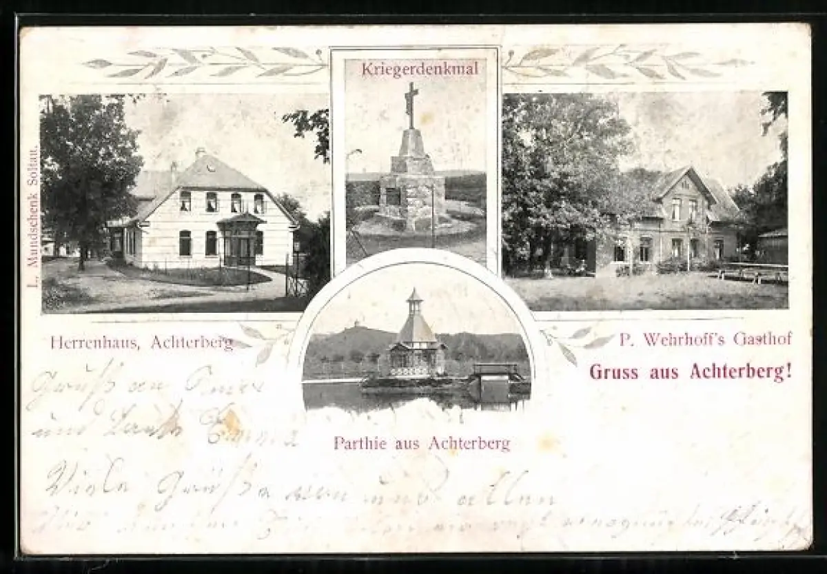 AK Achterberg /Lüneburger Heide, P. Wehrhoff`s Gasthof, Kriegerdenkmal, Herrenhaus