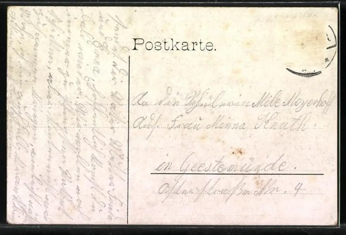 alte Ansichtskarte, gelaufen, Briefmarke entfernt, guter Zustand