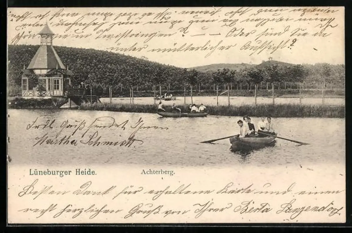 AK Achterberg /Lüneburger Heide, Partie mit Ruderern und Pavillon