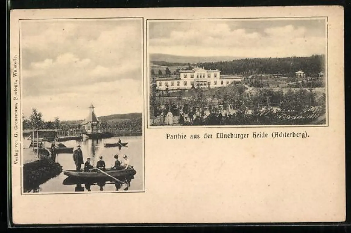 AK Achterberg /Lüneburger Heide, Wasserpartie und Anwesen