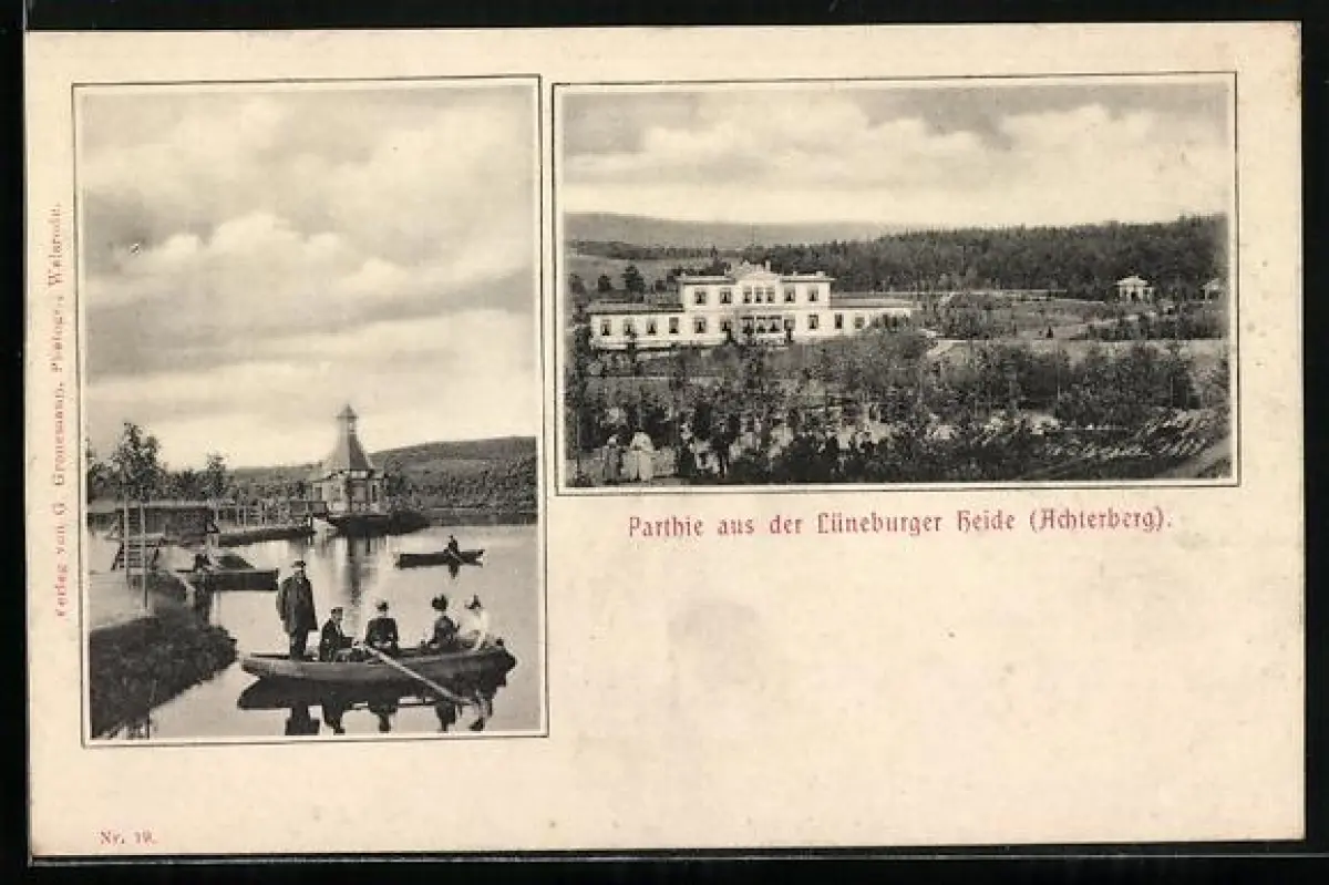 AK Achterberg /Lüneburger Heide, Wasserpartie und Anwesen