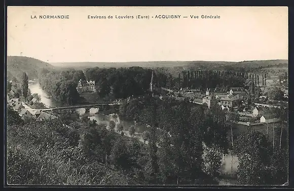 AK Acquigny, Vue générale sur le village et la rivière en Normandie