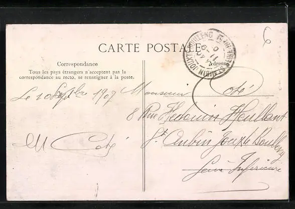 Personenbezogene Daten auf der Rückseite der Karte wurden durch blauen Textmarker unkenntlich gemacht. Die blauen Stellen sind auf die Vorderseite durchgeweicht und wirken sich negativ auf das Postkartenfoto aus