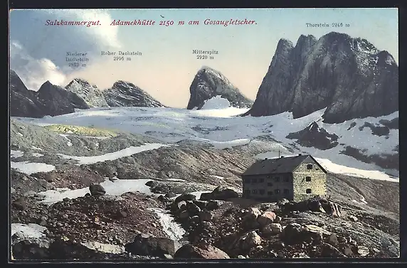 AK Adamekhütte, Blick zum Gosaugletscher mit Mitterspitze und Thorstein