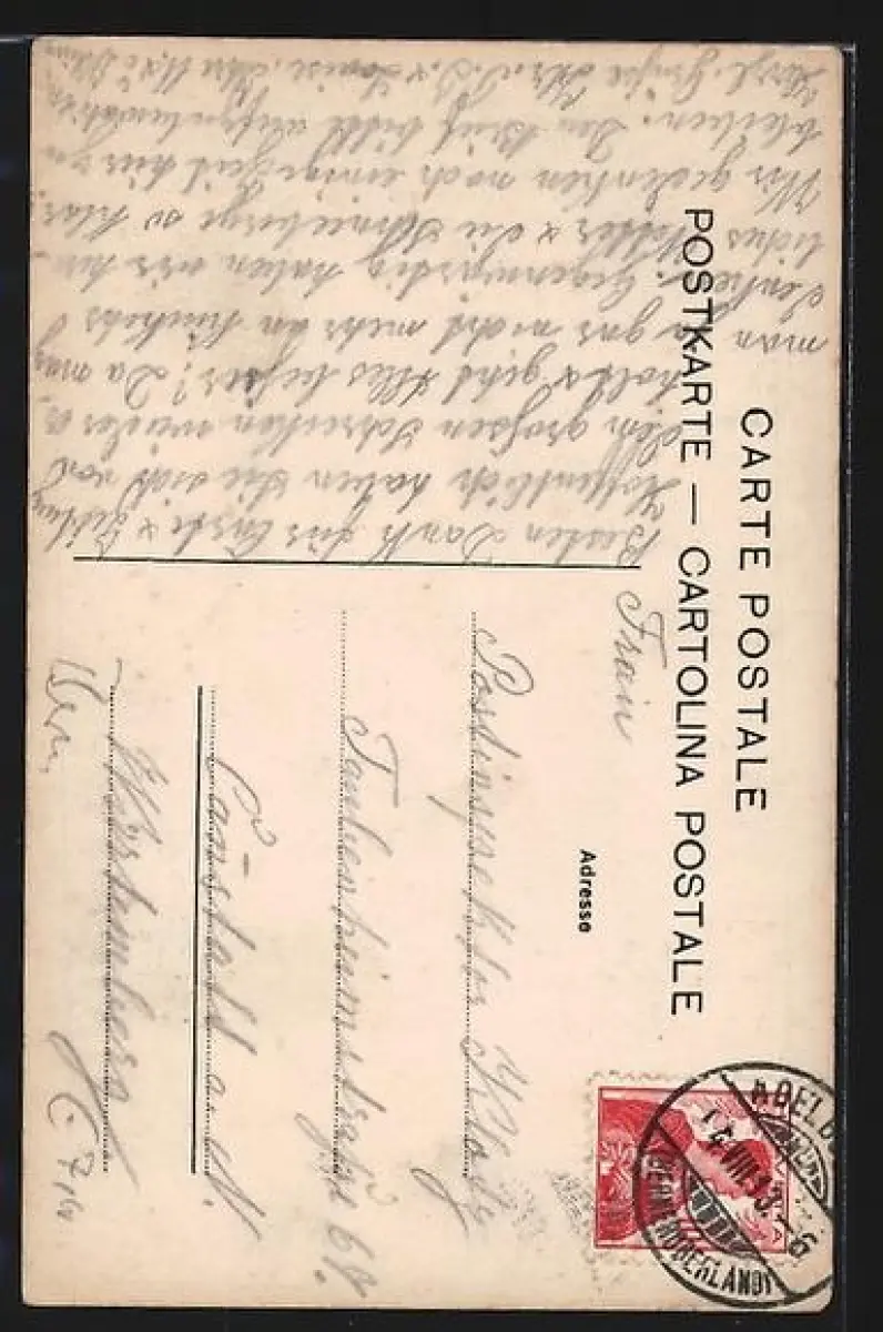 alte Ansichtskarte, gelaufen 1913, Abriebspuren oben, guter Zustand