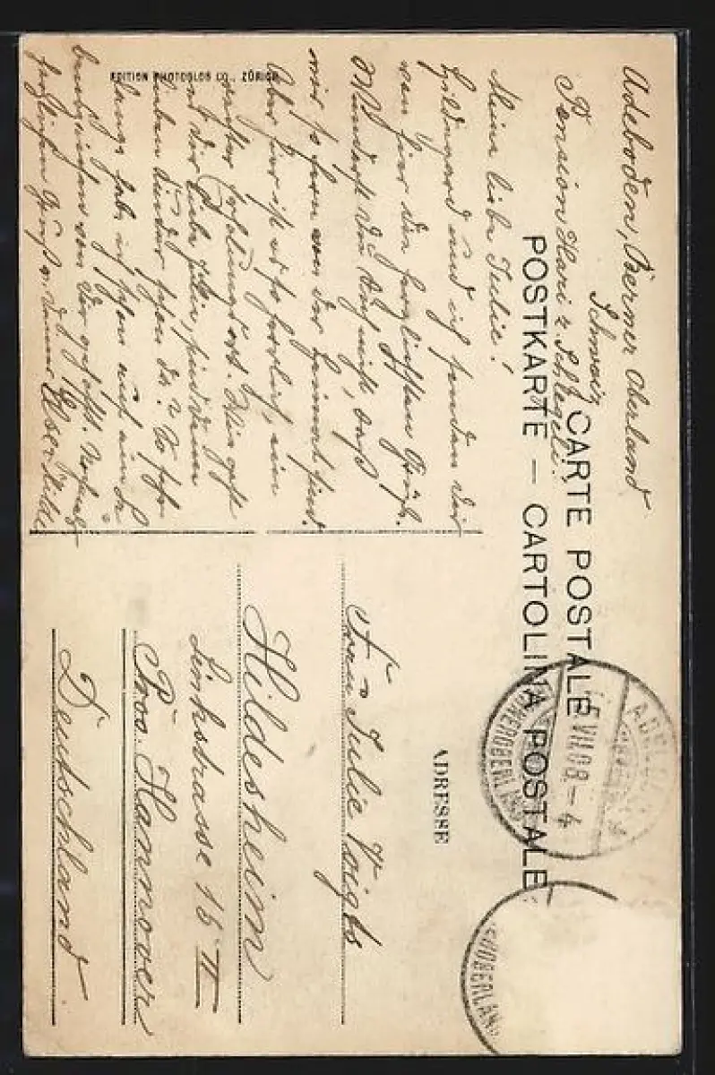 alte Ansichtskarte, gelaufen 1908, Briefmarke entfernt, rückseitig Oberflächenschaden, guter Zustand