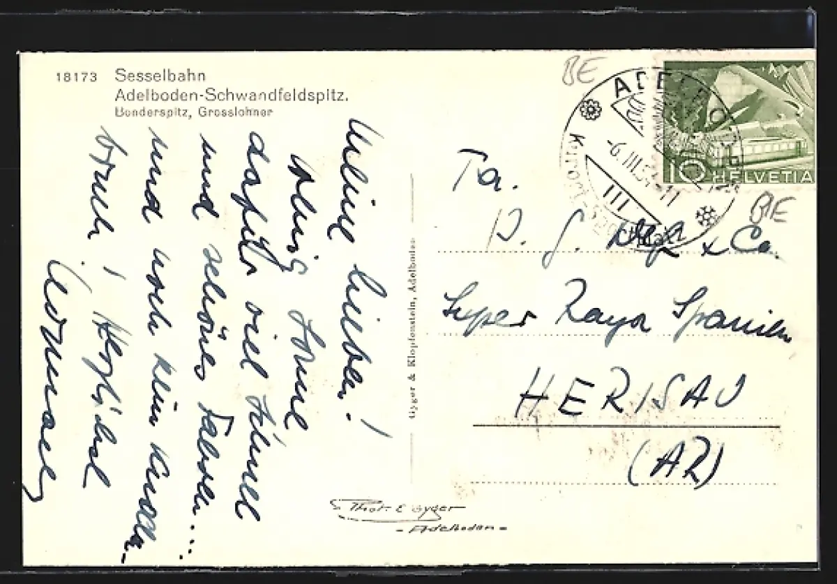 AK Adelboden, Sesselbahn zum Schwandfelsspitz über dem Ort, Winter
