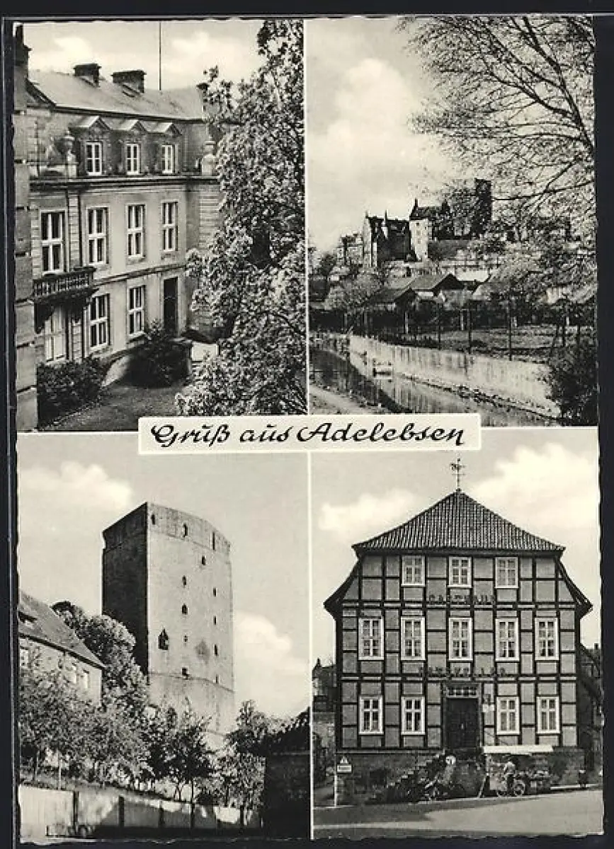 AK Adelebsen, Gasthaus Ratskeller, Strassenpartie mit Wohnhaus, Stadtturm