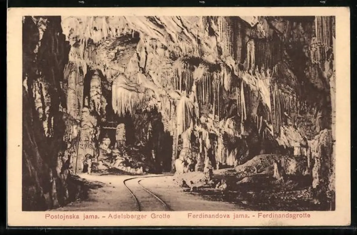 AK Adelsberger Grotte, Ferdinandsgrotte mit Gleisen