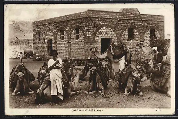 AK Aden, Caravan at rest, rastende Kamelkarawane