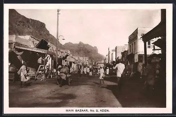 AK Aden, Main Bazaar No. 2, Strassenpartie mit Bazar