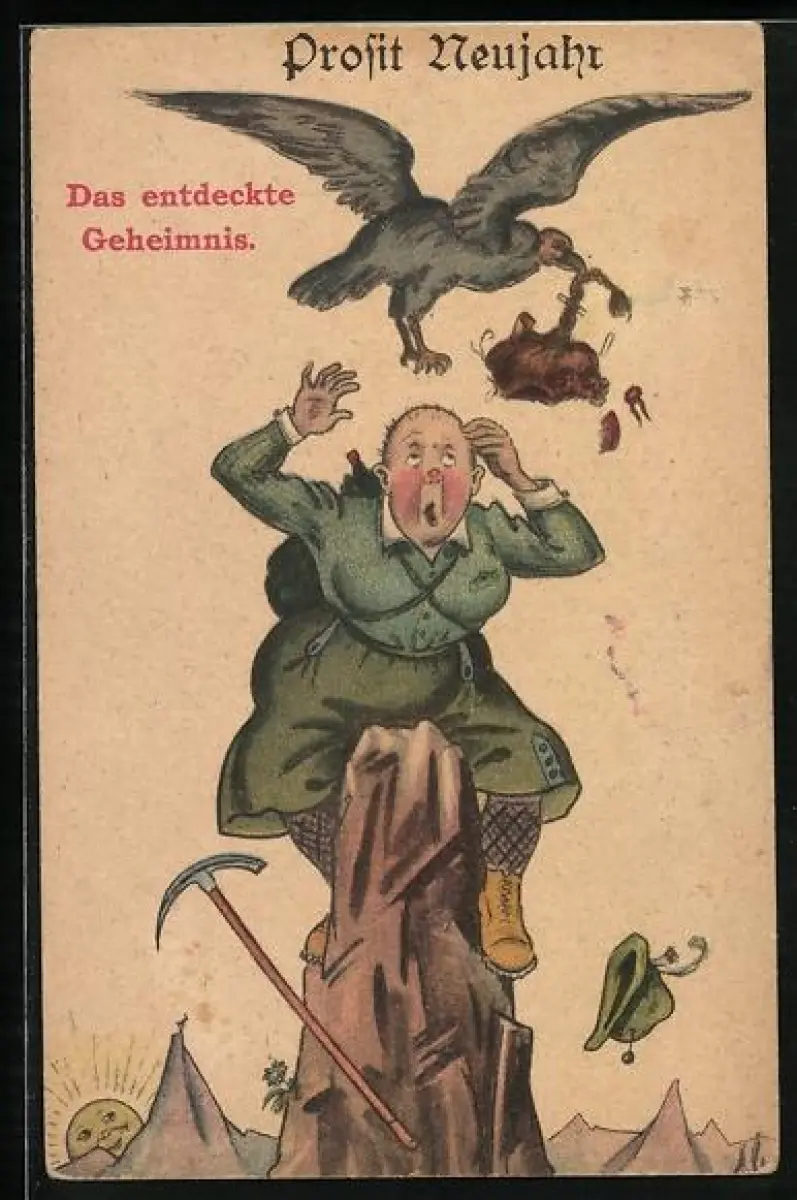 AK Adler klaut Frau die Perücke, frauenfeindlicher Humor