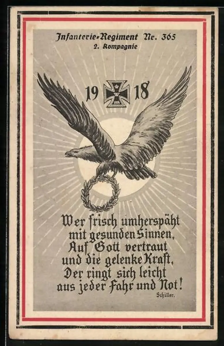 AK Adler mit Kranz, Infanterie-Regiment Nr. 365 2. Kompagnie 1918