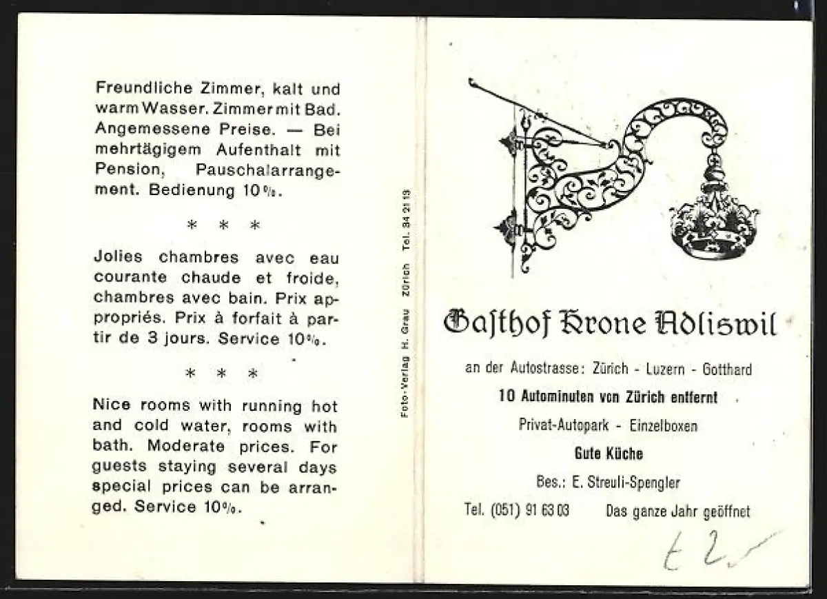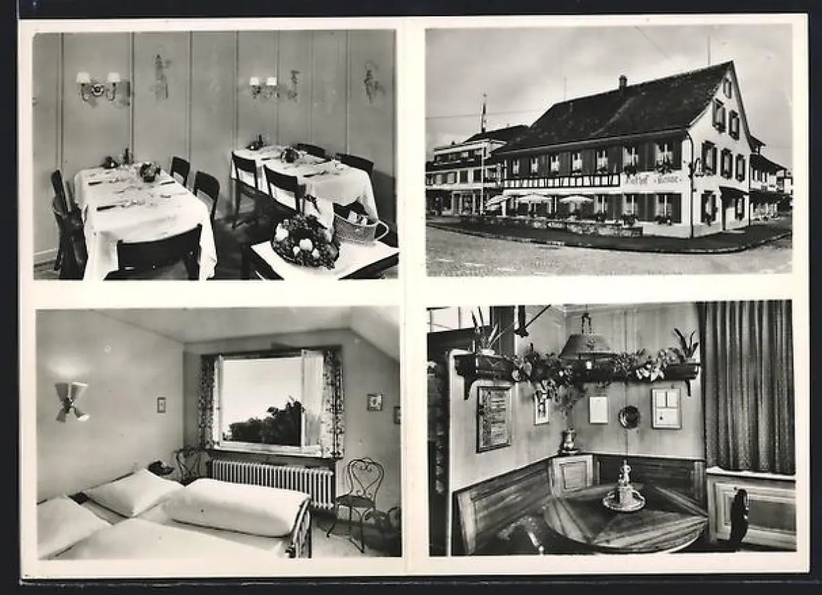 AK Adliswil, Gasthof Krone, Bes. E. Streuli-Spengler, Aussen- u. Innenansichten