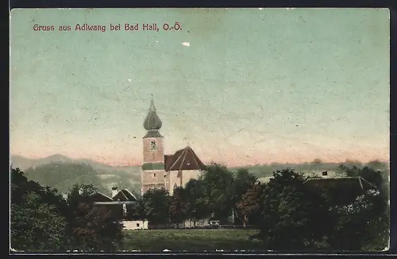 AK Adlwang bei Bad Hall, Ortspartie mit Kirche