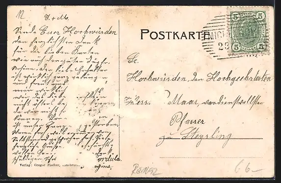 alte Ansichtskarte, gelaufen, rückseitig Oberflächenschaden, Abriebspur oben mittig, guter Zustand