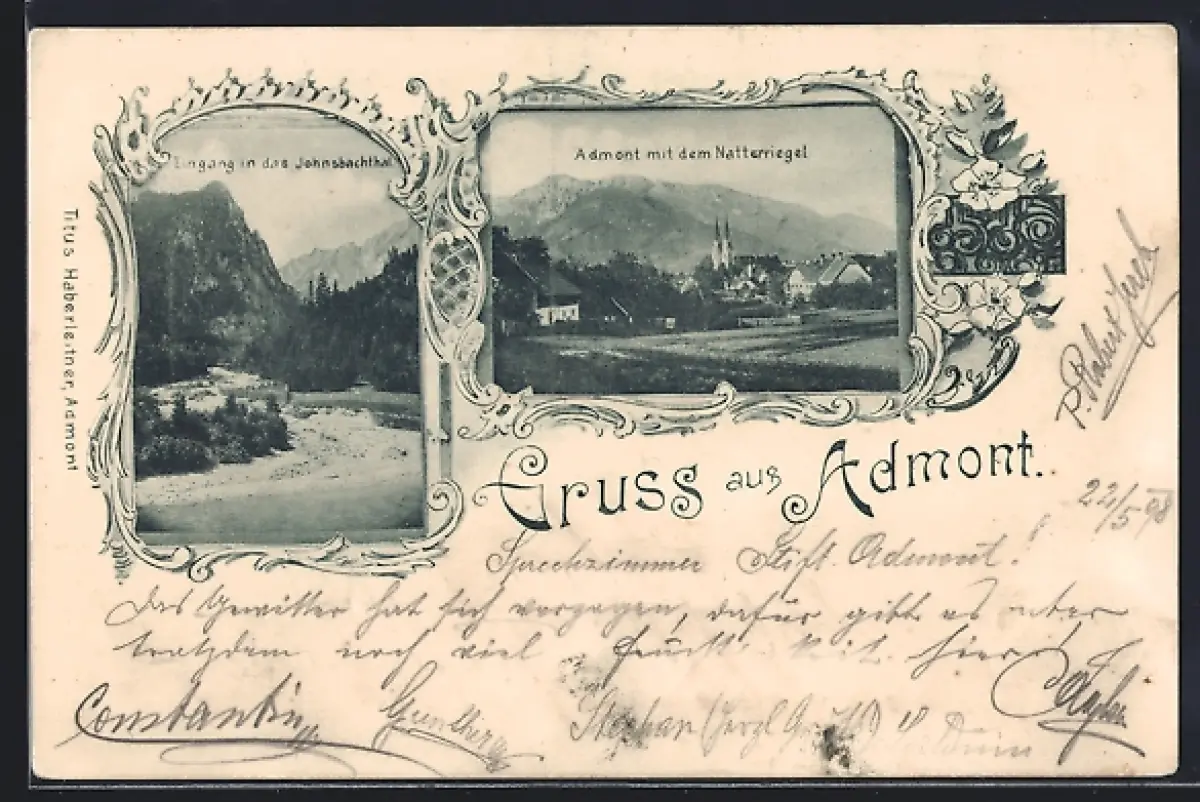 AK Admont, Eingang in das Johnsbachthal, Ortsansicht mit dem Natterriegel