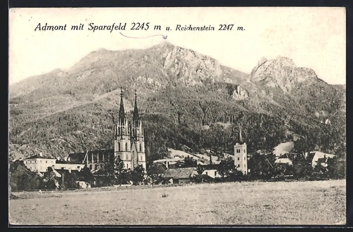 AK Admont, Kirche mit Sparafeld und Reichenstein