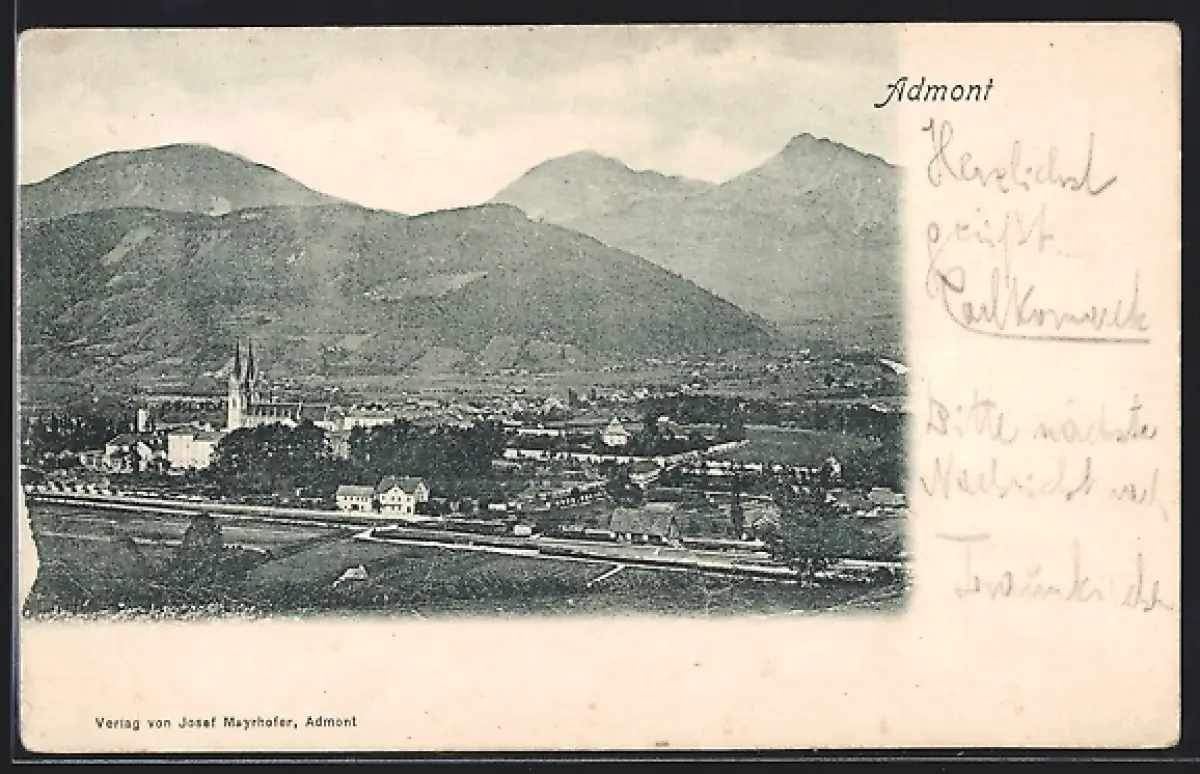 AK Admont, Ortsansicht mit Bahnhof