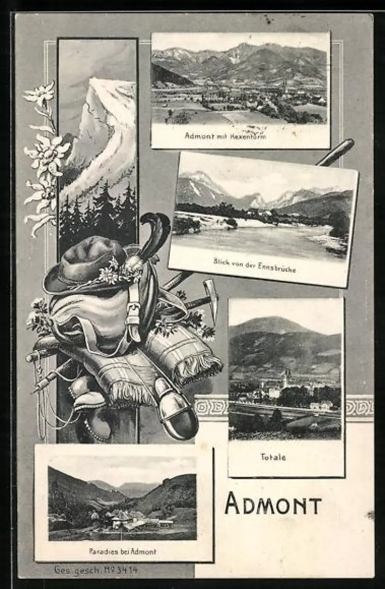 AK Admont, Ortsansicht mit Hexenturm, Totalansicht