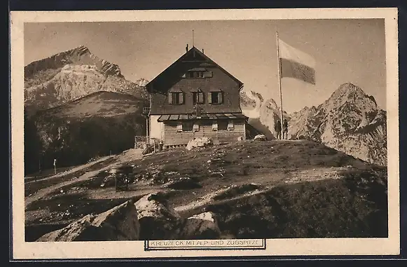 AK Adolf Zoeppritz-Haus, Berghütte am Kreuzeck mit Alp- und Zugstpitze