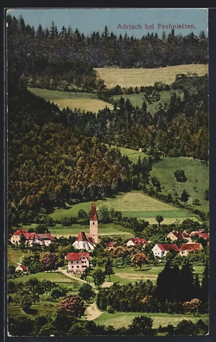 AK Adriach bei Frohnleiten, Ortspartie mit Kirche