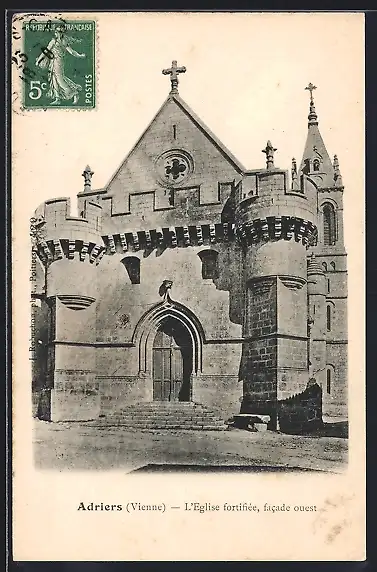AK Adriers /Vienne, L`Eglise fortifiée, facade ouest