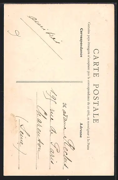 Personenbezogene Daten auf der Rückseite der Karte wurden durch blauen Textmarker unkenntlich gemacht. Die blauen Stellen sind auf die Vorderseite durchgeweicht und wirken sich negativ auf das Postkartenfoto aus