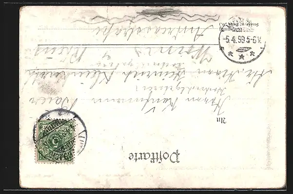 alte Ansichtskarte, gelaufen 1899, Einriss re. oben, guter Zustand